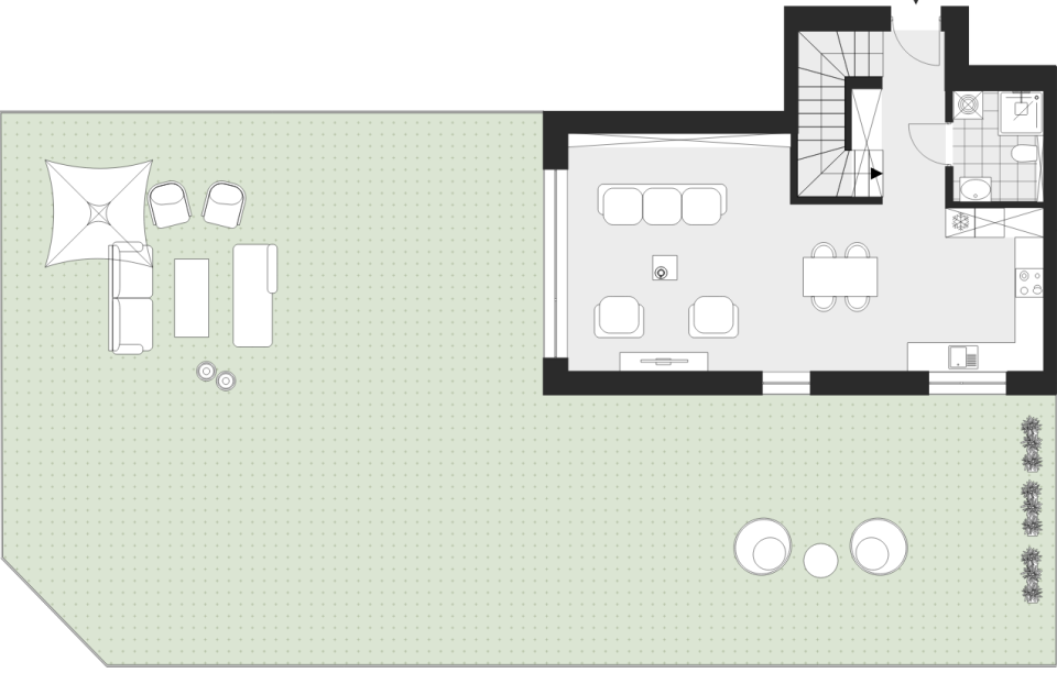 - Powierzchnia dodatkowa: ogródek (128,8 m²)